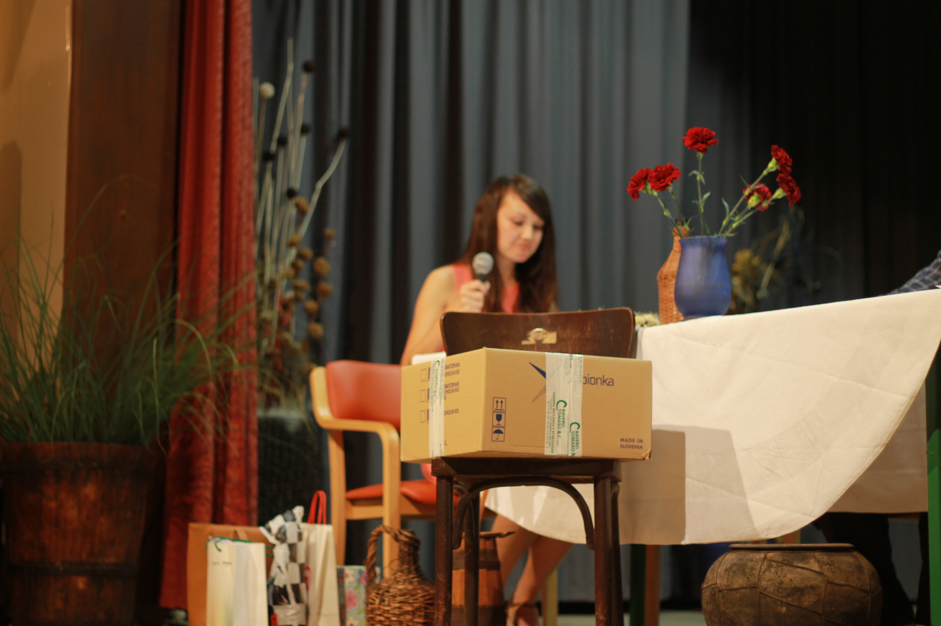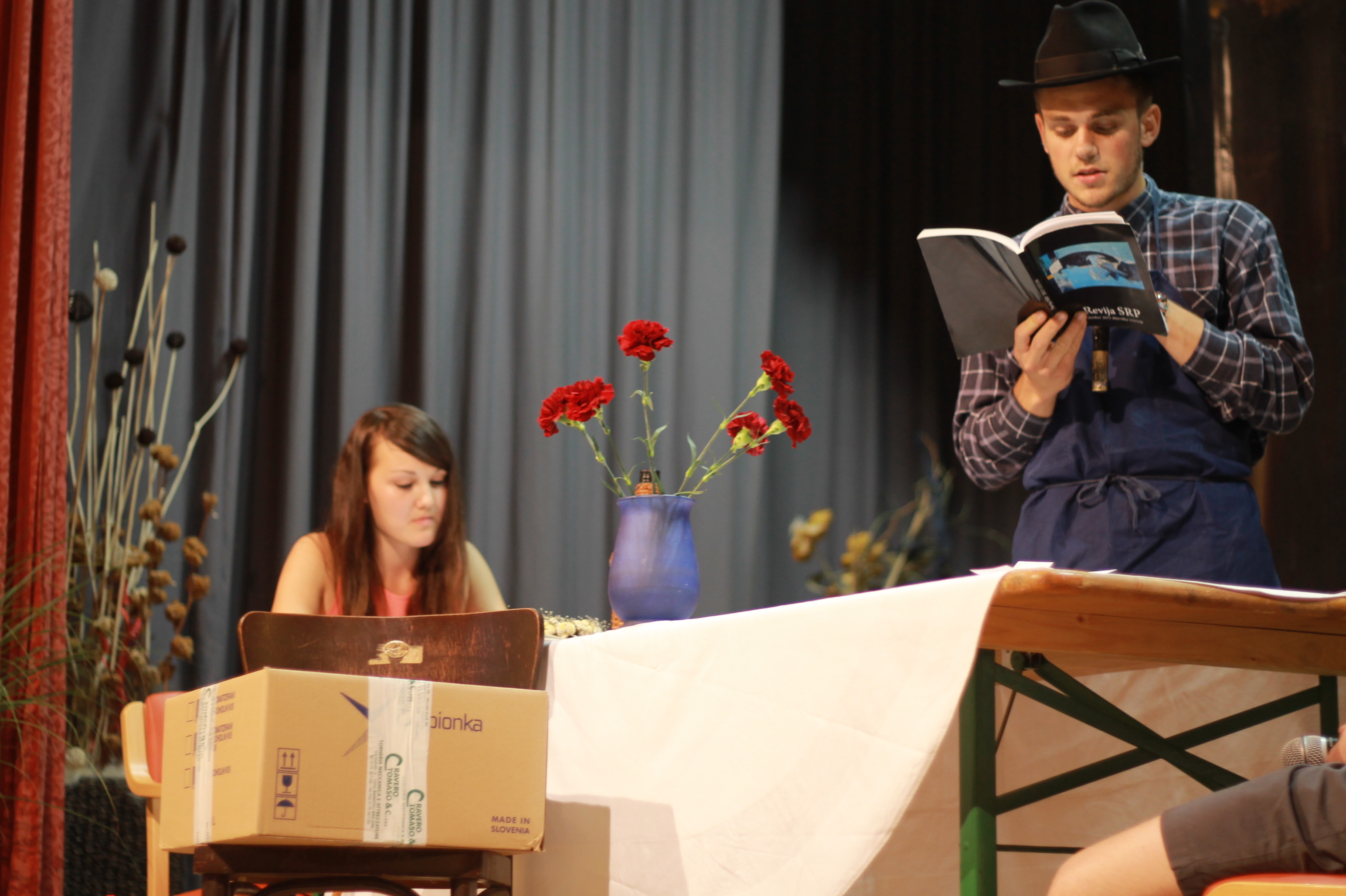 Predstavitev knjige Helene Srnec, Prleška düša, 27. junij 2014, Sokolana, Središče ob Dravi. Nastopali so ormoški gimnazijci z igro Prleški utrip.